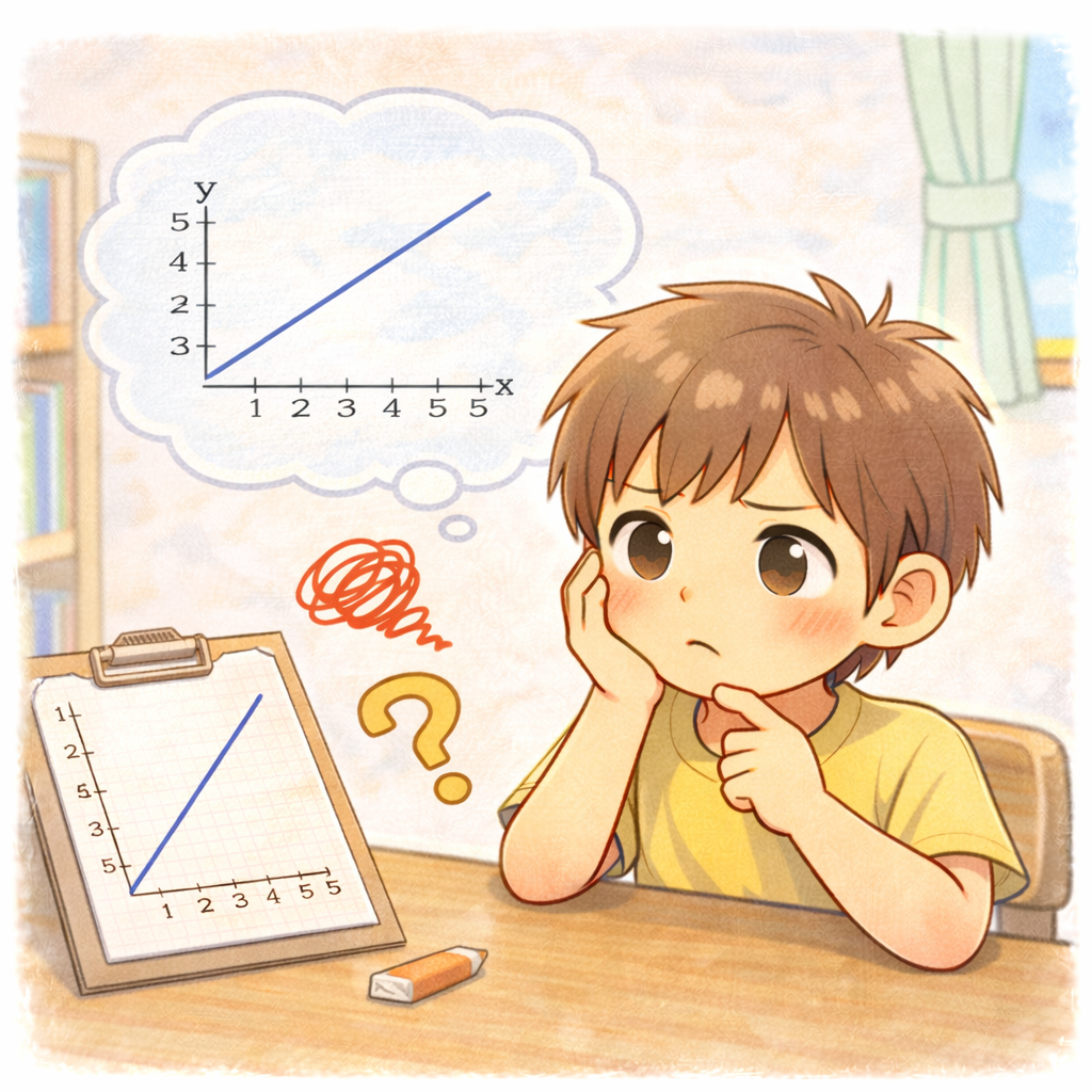 比例をうまくつかめていないお子さんは「xが1増えた時にyがいくつ増えているのか?」
