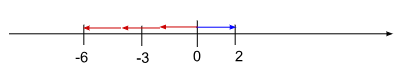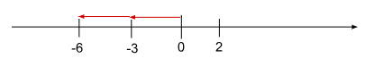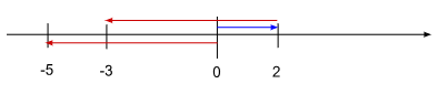 2の矢印の終点と-5の矢印の始点をくっつけるようにすると、-5の矢印の終点は-3を指します。
