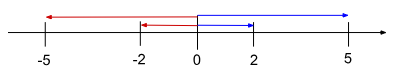 2や5、-2、-5などの数を矢印で捉えます。それぞれは向きと大きさが違います。