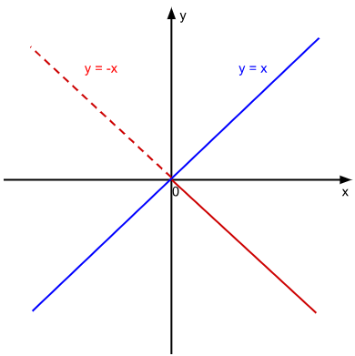 関数 \({y} = {x}\) のグラフと、関数 \({y} = {-x}\) のグラフを考えてみましょう。