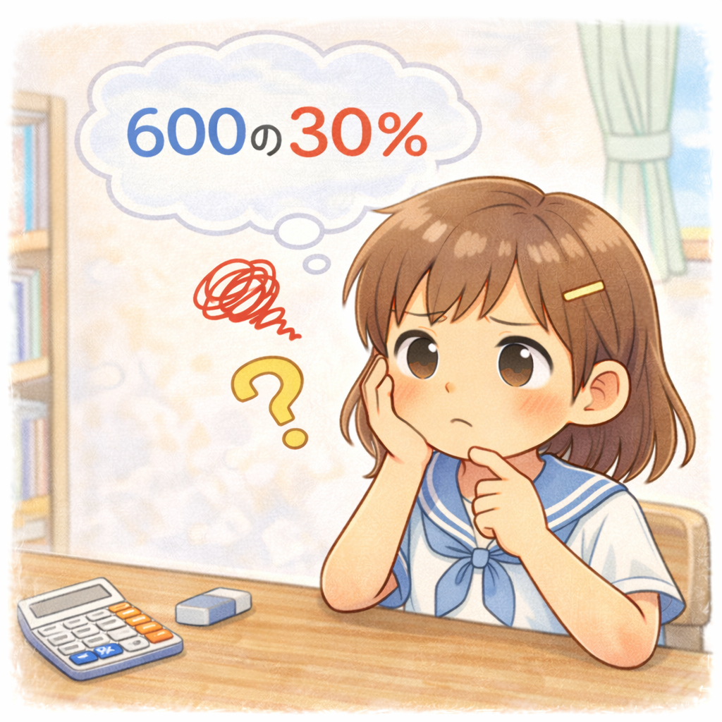 ・基準の600円に対して3割だから「\({600}×{0.3}\)」だ!